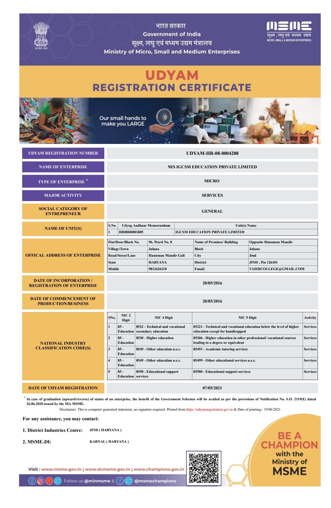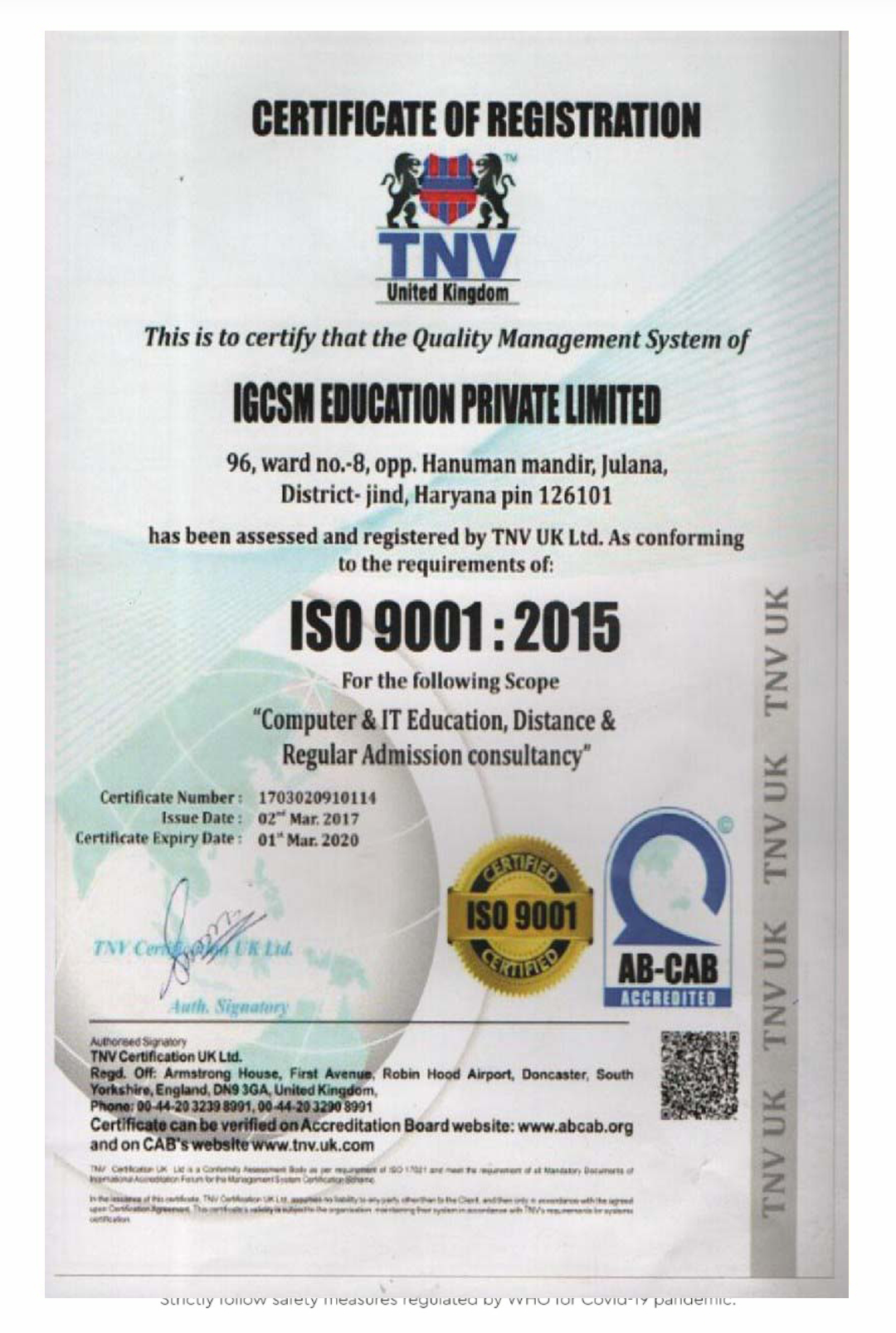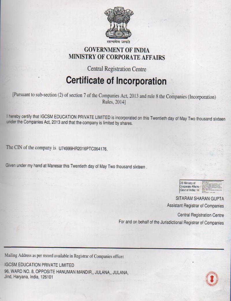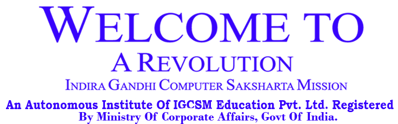 A Revolution Indira Gandhi Computer Saksharta Mission is running under IGCSM Education Pvt. Ltd., which is an ISO 9001:2015 Certified organization.